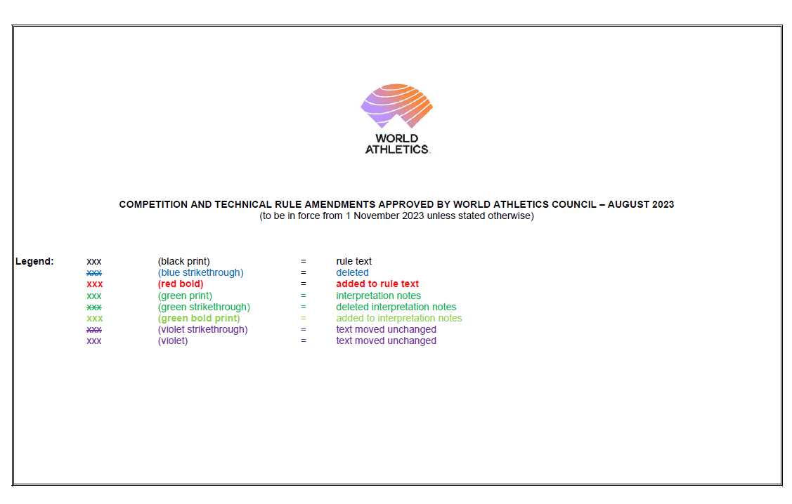 Anteriormente, la regla que permitía al Juez Jefe descalificar a un atleta en los últimos 100m cuando su modo de progresión infrinja obviamente las reglas, era aplicable solo a Competiciones Mundiales y de Área.